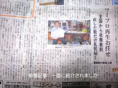 先日は、パナソニックのワープロを修理頂き有難うございました。